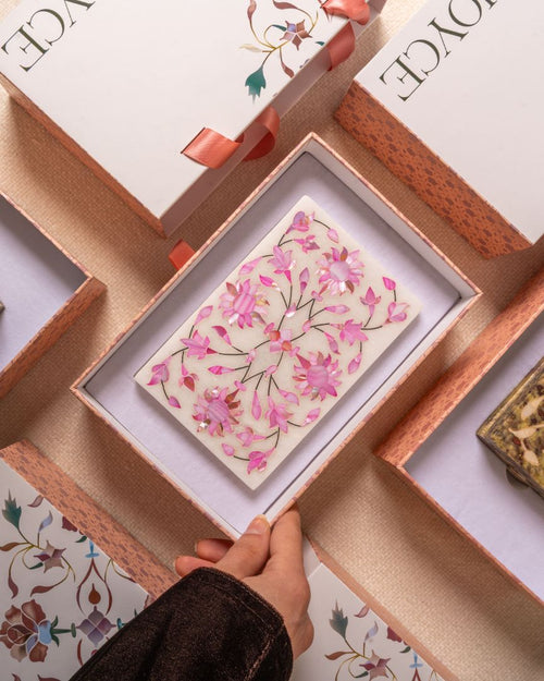 Handcrafted Inlay Art Box, available in an array of stunning hues — Ivory, Blue, Pink, Turquoise, Yellow, and More.